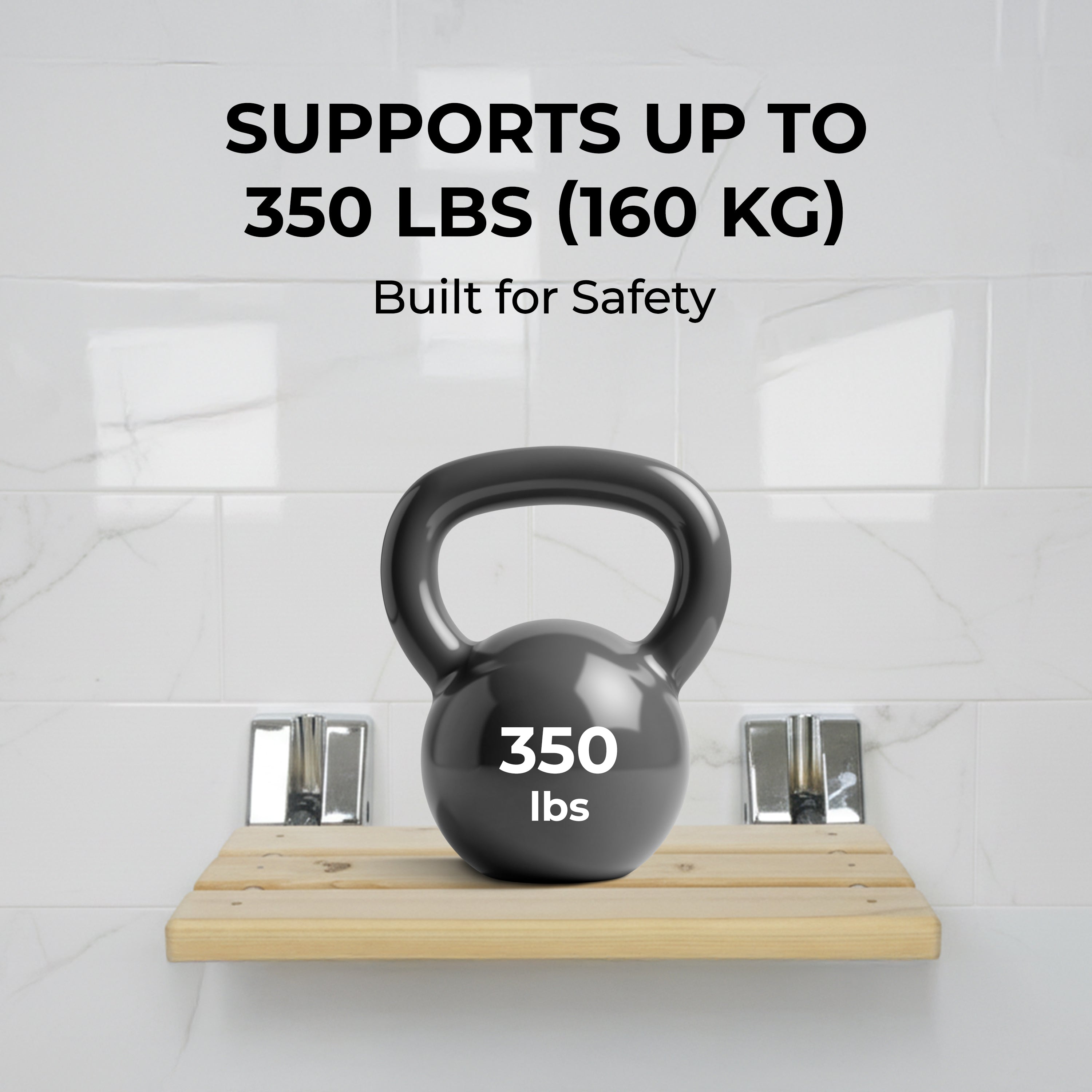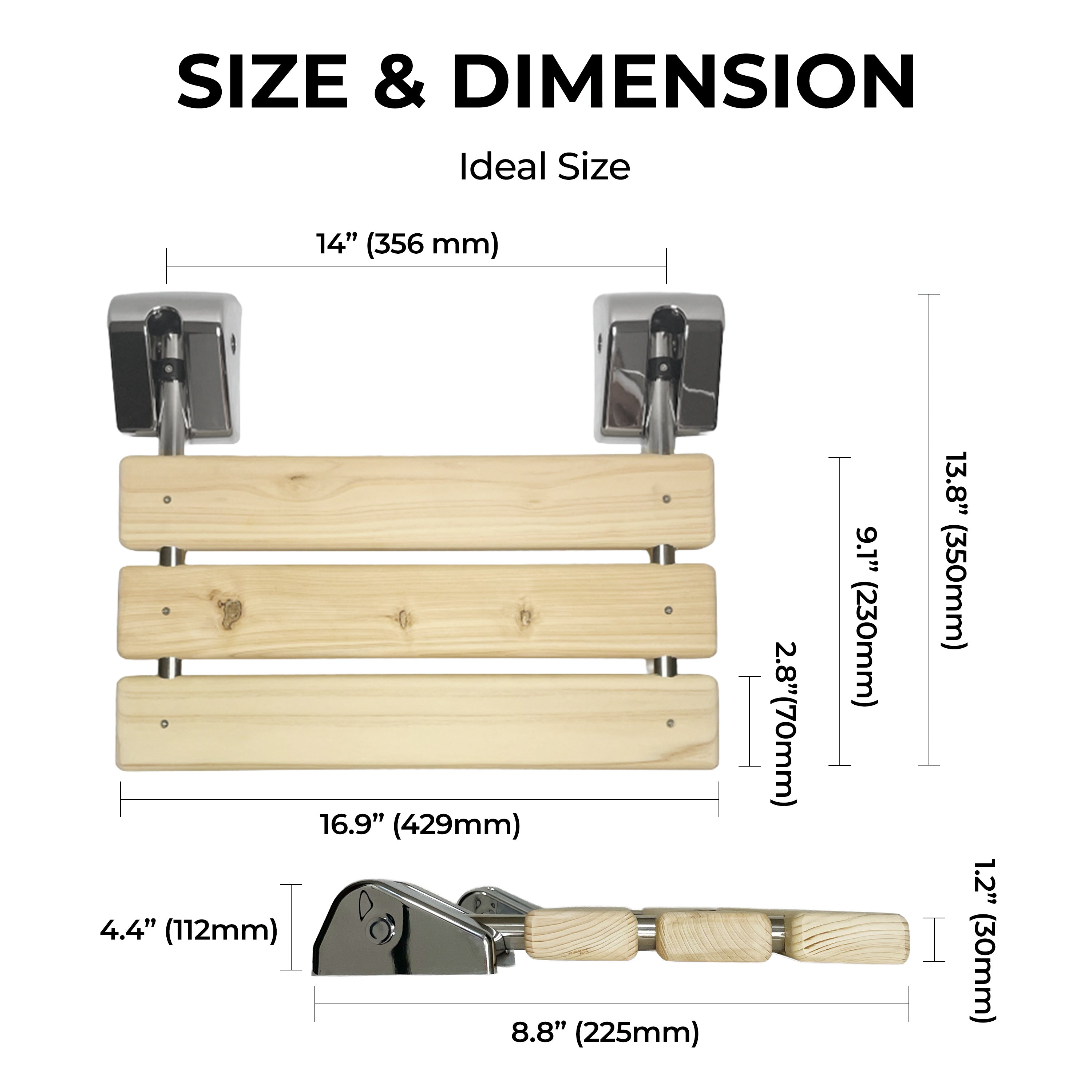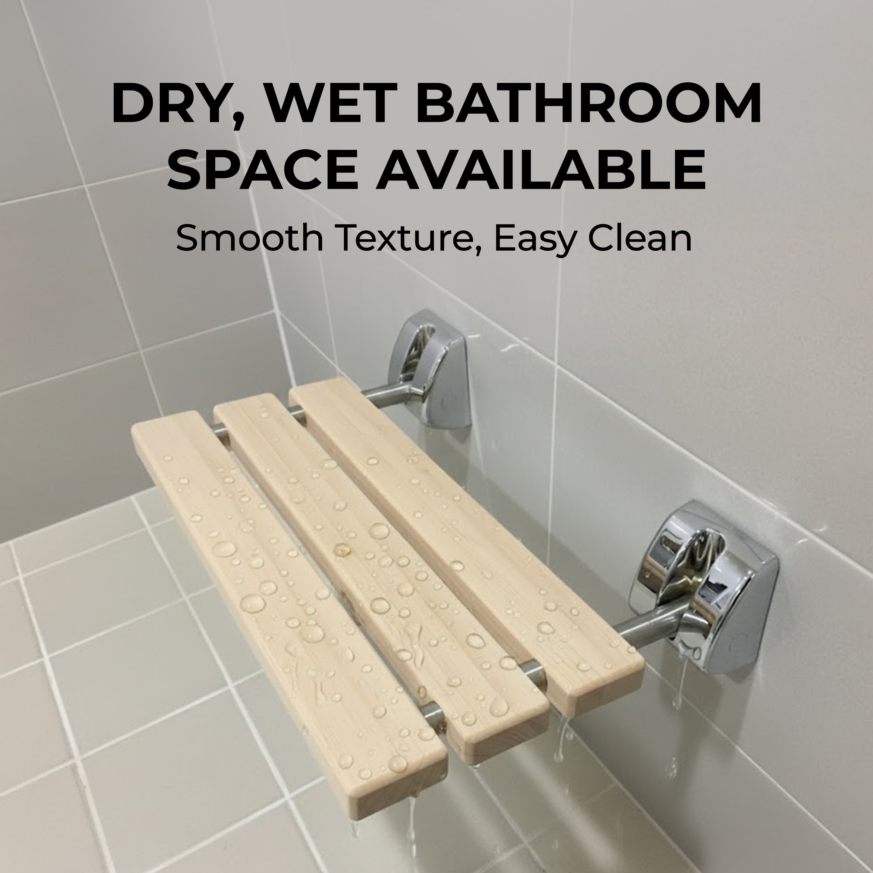 Bathroom Folding Shower Chair – Wall Mounted, Space-Saving Design, Hinoki Wood Seat, Aluminum Alloy Frame, Supports up to 350 lbs (160 kg) – Luxury Foldable Bench for Bathroom or Spa Use