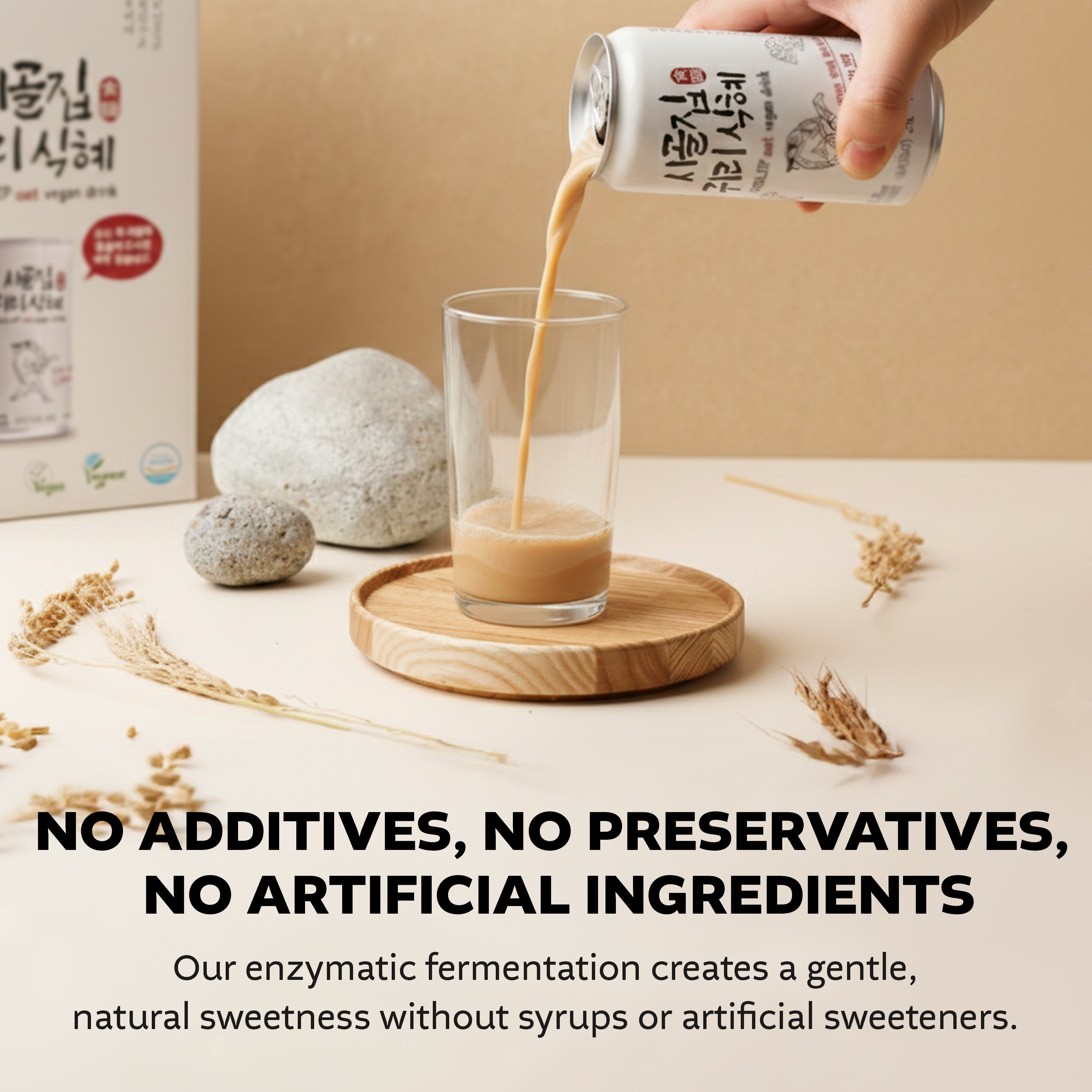 • Only simple, natural ingredients are used—real grains, barley malt, and water—with no additives, preservatives, or artificial ingredients. Enjoy it chilled for a clean, refreshing finish and a light yet nourishing texture inspired by classic Korean beverages.